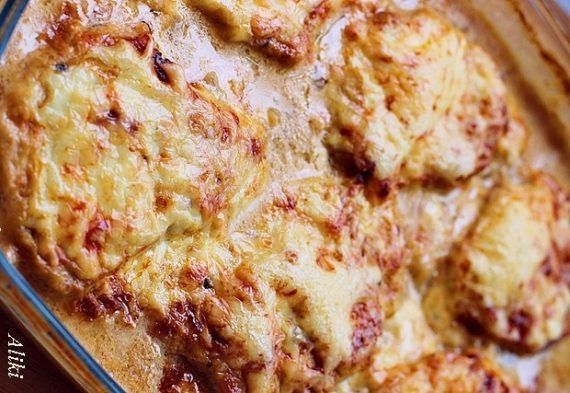 Ζουμερές μπριζόλες με πατάτες και σάλτσα μανιταριών στον φούρνο