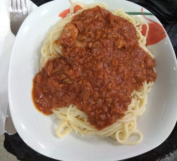 Μακαρόνια με κόκκινη σάλτσα τόνου. Υπέροχη μακαρονάδα με κόκκινη σάλτσα τόνου αν θέλετε να δοκιμάσετε κάτι διαφορετικό εσείς και η οικογένειά σας. Είναι μία πανεύκολη και πολύ πρωτότυπη συνταγή. Η σάλτσα γίνεται όπως παρασκευάζουμε την παραδοσιακή κόκκινη σάλτσα ντομάτας για ζυμαρικά.