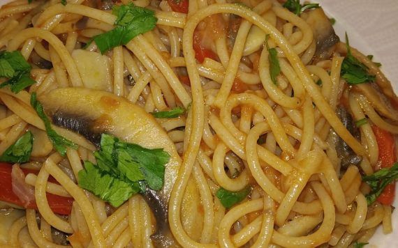 Spaggeti ολικής άλεσης, μανιτάρια και φρέσκια ντομάτα για τη νηστεία του Δεκαπενταύγουστου. Σε αυτή τη συνταγή θα μάθεις όλα τα μυστικά για να βγει η σάλτσα δεμένη και τα μανιτάρια να αποκτήσουν μία ιδιαίτερη γεύση από τις πιπεριές. Μία καλοκαιρινή και εύκολη μακαρονάδα για όλη την οικογένεια, τις μέρες που είστε κουρασμένες, δεν έχετε χρόνο να μαγειρέψετε ή θέλετε να νηστέψετε για τον Δεκαπενταύγουστο.