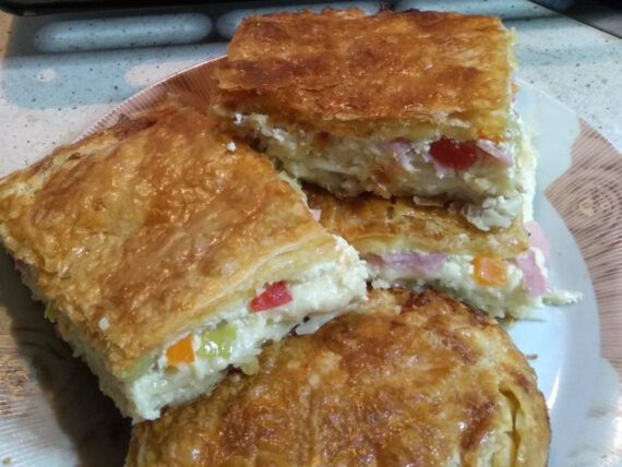 Δείτε παρακάτω την εκτέλεση για την μακαρονόπιτα σφολιάτας: