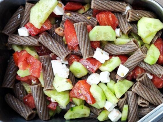 Δείτε παρακάτω την εκτέλεση για την μακαρονοσαλάτα με ριγκατόνι ολικής: