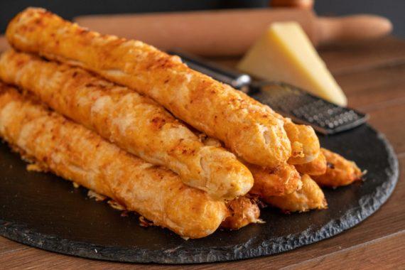 Μετά από 30 λεπτά κόβουμε την ζύμη σε μπαλάκια των 100 γρ. και αρχίζουμε ένα ένα να τα ανοίγουμε με τα χέρια μας σε μακρόστενα μπαστούνια.
