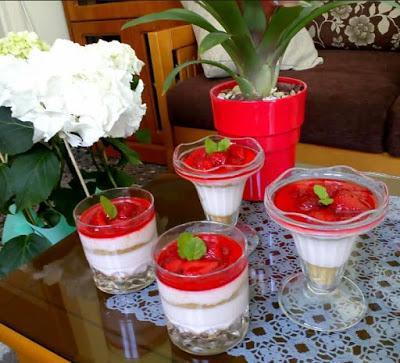 Ένα μαμαδίστικο γλυκό φράουλας γρήγορο και νόστιμο…???Μπορείτε να να το φτιαξετε και σε σφηνάκια για βάφτιση.Η για κέρασμα στο σχολείο