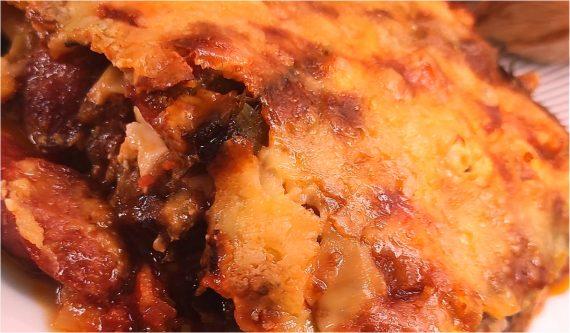 Είναι ένα φαγητό που λιώνει στο στόμα και τώρα που έφτασε η εποχή της μελιτζάνας δεν θα μπορέσουμε να του αντισταθούμε σίγουρα. Αν σας αρέσει ο μουσακάς τότε σίγουρα αυτό το φαγητό θα το λατρέψετε αφού η μελιτζάνα είναι κι εδώ αρκετά έντονη. Το λουκάνικο έρχεται και κάνει το φαγητό…μούρλια. Καλή όρεξη!