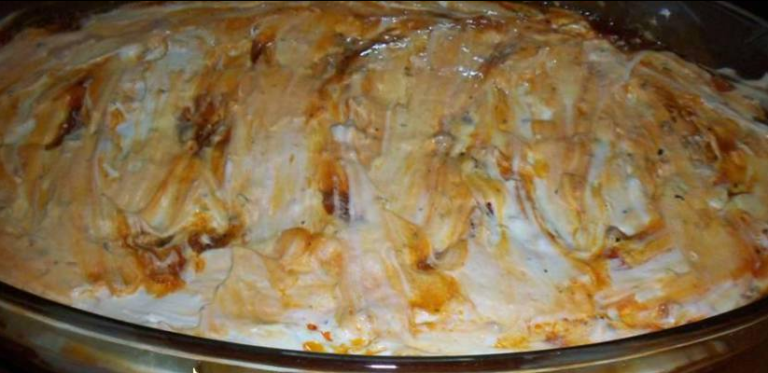 Έπειτα απλώνουμε το γιαούρτι πάνω από την σάλτσα και αν μας αρέσει, πασπαλίζουμε με γλυκιά πάπρικα !Επίσης αν προτιμάμε, μπορούμε να ψήσουμε το φαγητό με το γιαούρτι για 10-15 λεπτά και αφού το βγάλουμε από τον φούρνο και το αφήσουμε να κρυώσει καλά, να το κόψουμε σε κομμάτια και να σερβίρουμε.
