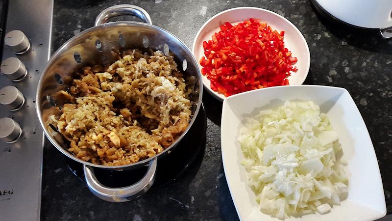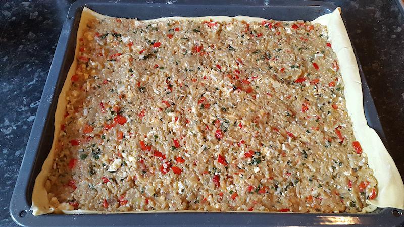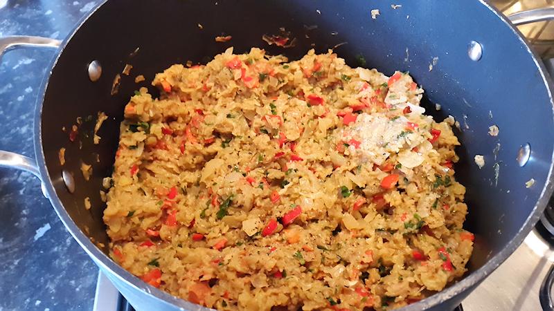 Αποσύρετε το τηγάνι από τη φωτιά και το αφήνετε στην άκρη να κρυώσει το μείγμα λαχανικών. Επειδή είναι απαραίτητο το μείγμα να κρυώσει καλά πριν το επόμενο στάδιο της συνταγής, αν δεν έχετε χρόνο, μπορείτε να το βάλετε στο ψυγείο για 30 λ, ενώ στη θερμοκρασία δωματίου θα χρειαστείτε 1 ώρα για να κρυώσει εντελώς.