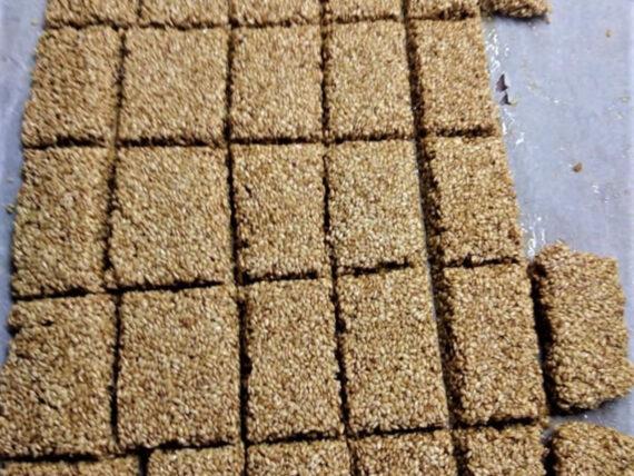 Εκτέλεση για το μελωμένο παστέλι με σουσάμι για σχολικό κολατσιό