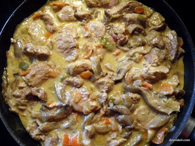 Μαριναρισμένο μοσχαράκι, με σάλτσα μανιταριών