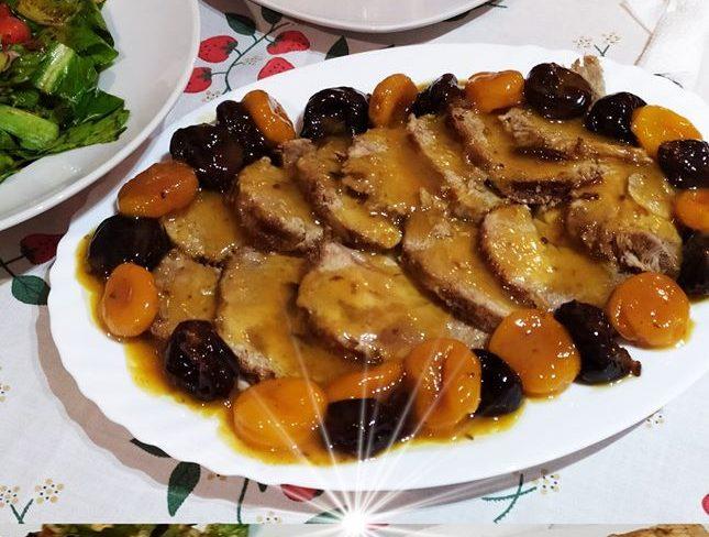 Ψητό χοιρινό ρολό με κονιάκ και αποξηραμένα φρούτα