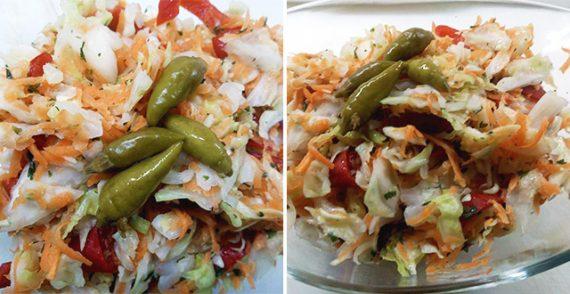 Υλικά 1 λάχανο 8 καρότα 1 μαϊντανό 5 κόκκινες πιπεριές 1 σέλινο (μόνο τα φύλλα) 150ml ξύδι 100ml λεμόνι Αλάτι