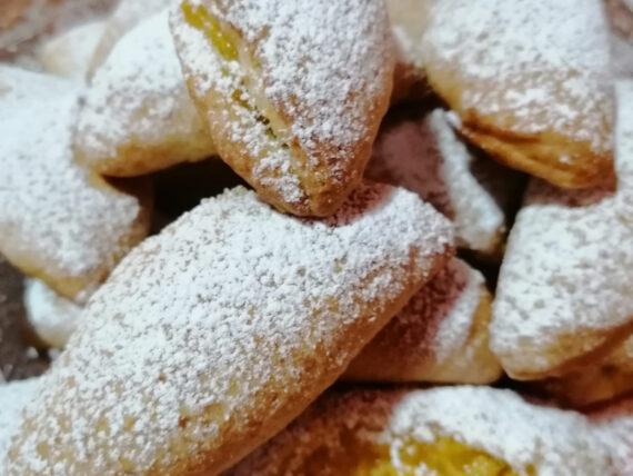 Ζυμώνουμε μέχρι να πάρουμε μία αφράτη ζύμη που να μην κολλάει στα χέρια. Μόλις η ζύμη είναι έτοιμη την ανοίγουμε με τον πλάστη και την κόβουμε σε πιτάκια. Γεμίζουμε το κάθε πιτάκι με λίγη από την κρύα γέμιση και κλείνουμε.