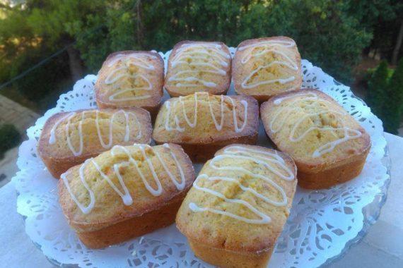Είναι πολύ σημαντικό αυτό για να φουσκώσουν όμορφα. Μειώνουμε την θερμοκρασία του φούρνου στους 170 βαθμούς Κελσίου και ψήνουμε για μίνι κέικ 25-30 λεπτά. Για muffins ελέγχουμε μετά τα 15 λεπτά με μία βελόνα. Αν βγαίνει στεγνή είναι έτοιμα. Αφήνουμε να σταθούν 5 λεπτά και ξεφορμάρουμε προσεκτικά. Διακοσμούμε κρύα με λίγο άσπρο γλάσο.