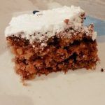 Στρώνουμε το μείγμα σε ένα λαδωμένο και αλευρωμένο ταψί κι έπειτα το πασπαλίζουμε με τις σταφίδες. Βάζουμε και τα καρύδια θρυμματισμένα. Ψήνουμε στους 180 βαθμούς Κελσίου για 40-60 λεπτά, ανάλογα και τον φούρνο. Σας άρεσε αυτή η συνταγή; Πείτε μας την γνώμη σας στα σχόλια.