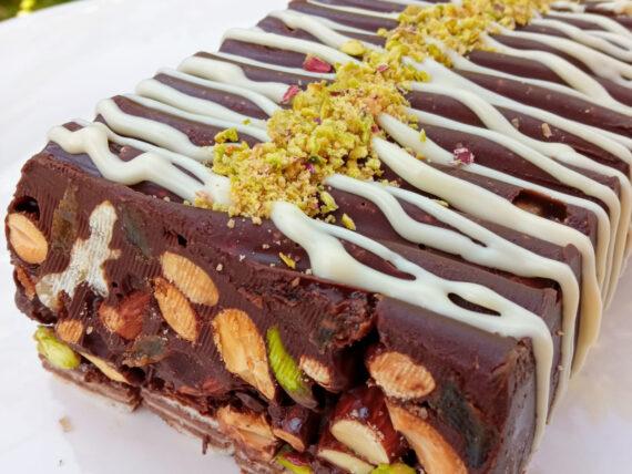Εκτέλεση για το μωσαϊκό σοκολάτας με διάφορους ξηρούς καρπούς