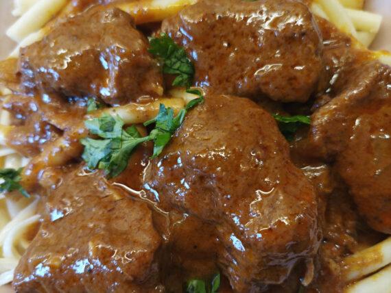 Δείτε παρακάτω την εκτέλεση για το Μοσχαράκι κοκκινιστό με χοντρά μακαρόνια: