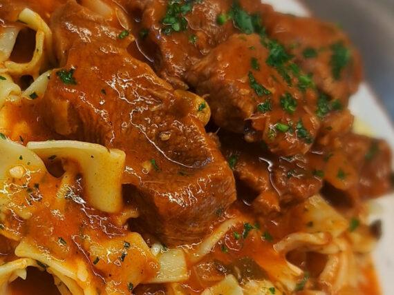 Εκτέλεση για το μοσχαράκι κοκκινιστό με χυλοπίτες για το lunch box του σχολείου