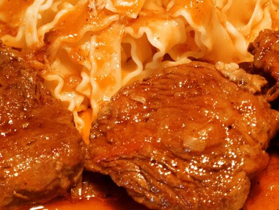 Ένα φαγητό σκέτο λουκούμι που μπορούμε να απολαύσουμε μετά το μπάνιο μας στην παραλία. Μοσχαράκι κοκκινιστό με δεμένη σάλτσα και λαζάνια.