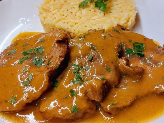 Κοκκινιστό μοσχάρι με δεμένη σάλτσα