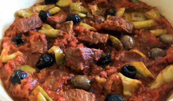 Μοσχαράκι με πιπεριές και ελιές σκέτο λουκούμι. Ό,τι πρέπει για το Κυριακάτικο τραπέζι.