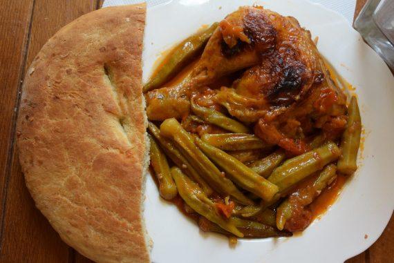 Παίρνω ένα ταψάκι το λαδώνω ελαφρώς το πασπαλίζω με αλεύρι το τινάζω και βάζω μέσα στρογγυλό το ζυμαράκι μου . Το απλώνω με το χέρι σε οτι σχήμα το σκεπάζω και το αφήνω λίγο να φουσκώσει. Σήμερα όταν έψηνα το φαγητό το ακούμπησα για θερμότητα πάνω στην κουζίνα. Μόλις φουσκώσει λίγο το χαράσσω 3 χαρακιές λοξά το χαϊδεύω με λαδωμένο χέρι και το ψήνω στους 180 περίπου ούτε 30 λεπτά ανάλογα τον φούρνο. Υπ όψιν δεν γίνεται το ψωμί με την πολύ ψίχα αλλά είναι κανονικό και πεντανόστιμο !