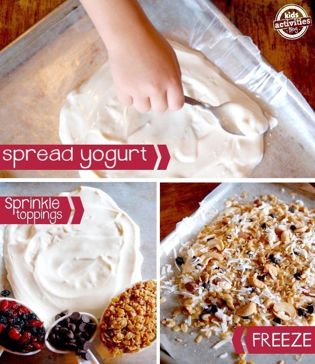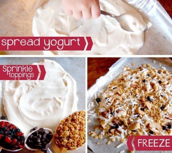 Επίσης μια πολύ ωραία ιδέα είναι να ανακατεψετε δημητριακα,γιαουρτι,κομματάκια σοκολάτας ή και φρούτα,να στρώσετε μία λαδόκολλά όπως στη φωτογραφία και να τα βάλετε στο ψυγειο να παγώσουν καλα. Μόλις είναι ετοιμο,σπάτε σε κομμάτια και απολαμβάνετε!