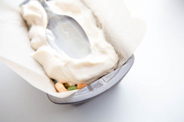 Μόλις παγώσει το γιαούρτι, θα είναι δύσκολο να το βγάλετε από τη φόρμα, οπότε μην παραλείψετε αυτό το βήμα.