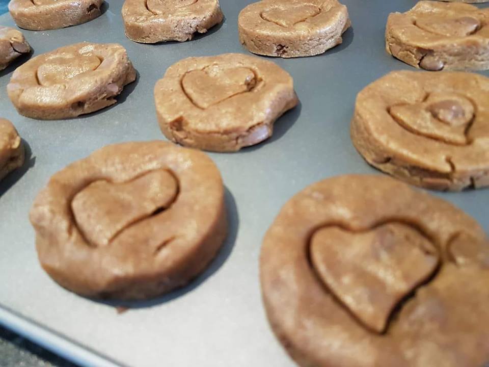 Σε μπολ βάζετε όλα τα υλικά εκτός της άχνης και τα αναμιγνύεται καλά. Απλώστε τη ζύμη σε επιφάνεια και κόψτε με κουπ πατ τα μπισκότα ή με ένα ποτήρι. Με ένα μικρότερο κούπ πατ πιέστε στη μέση το μπισκότο χωρίς να πάτε μέχρι κάτω. Τοποθετήστε σε ταψί με αντικολιτική κόλλα ψησίματος και ψήστε σε προθερμασμένο φούρνο στους 180 βαθμούς αέρα για 10 με 12 λεπτά, ανάλογα πάντα με το φούρνο μας. Μόλις τα βγάλετε από το φούρνο τα αφήνετε στο ταψί για 5 λεπτά γιατί είναι μαλακά ακόμα. Μετά τα βάζετε σε σχάρα να κρυώσουν τελείως.