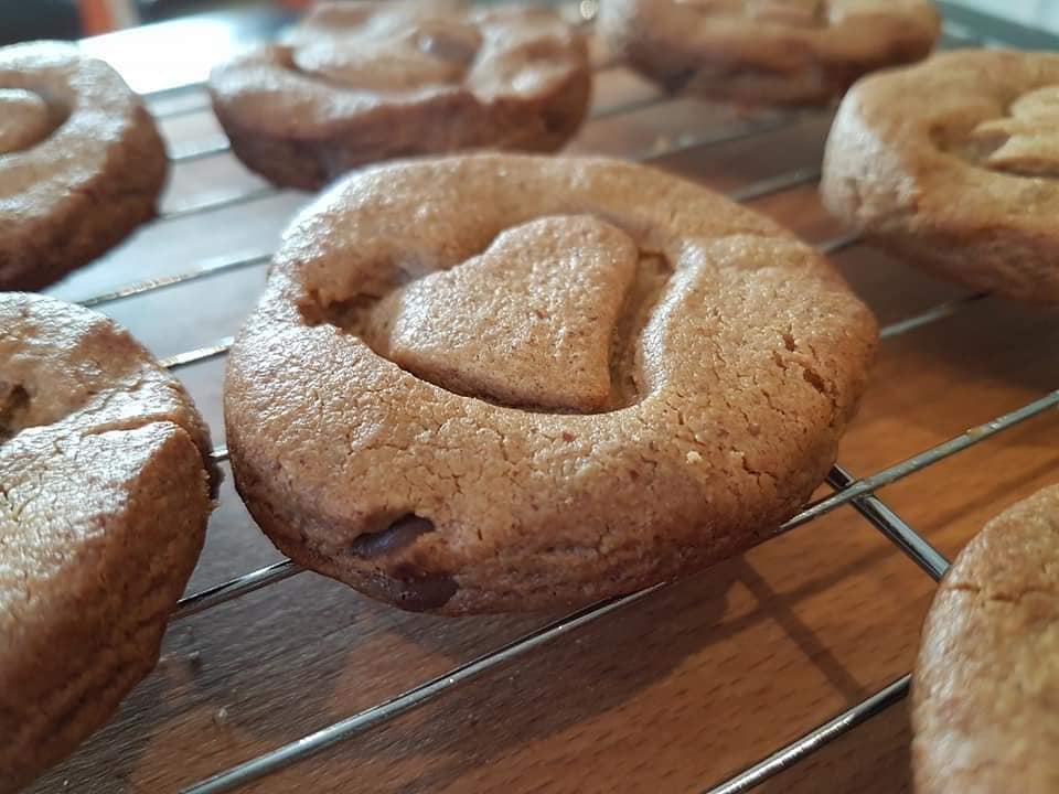 1 κούπα ζάχαρη καστανή ή λευκή 1 κούπα φυστικοβούτυρο 1 αυγό 1/2 κούπα σταγόνες σοκολάτας Λίγη άχνη για πασπάλισμα