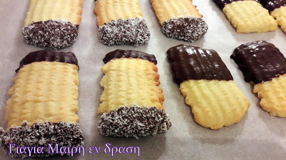 Μπισκότα βουτύρου Υλικά 1 κιλό αλεύρι γοχ 2 lourpak των 250 γραμ 1 φακελάκι μπεικιν 250 γραμ ζάχαρη άχνη 4 αυγά ξύσμα και χυμό από ένα λεμόνι μια πρέζα αλάτι Εκτέλεση Σε μια μεγάλη λεκανίτσα χτυπάμε το βούτυρο που το έχουμε σε θερμοκρασία δωματίου . Προσθέτουμε σταδιακά την ζάχαρη, τα αυγά,το μπεικιν, το ξύσμα και τον χυμό λεμονιού,και το αλάτι. Σταματάμε το μίξερ και προσθέτουμε το αλεύρι ζυμώνοντας με το χέρι. Βγαίνει μια μαλακή ζύμη που κολλάει λιγάκι στα χέρια. Κάνουμε τα μπισκοτάκια μας με πρέσα καλύτερα η’ αλλιώς με κορνε. Τα στρώνουμε σε λαδόκολλα. Τα ψήνουμε στους 190 για 15 λεπτά περίπου. να μην σκουρύνουν. Μπορείτε να ρίξετε από πάνω πριν τα ψήσετε ζάχαρη με κανέλα, η’ διάφορα σοκολατομπιλάκια. Μόλις κρυώσουν μπορείτε να τα βυθίσετε σε σοκολάτα που θα λιώσετε σε μπαιν μαρι.