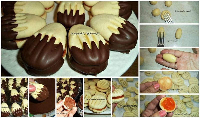 Τα λένε ”Αλφαχόρες”…τα λένε ”Melting moments”… Eγώ τα ονόμασα ”Γατίσιες Πατουσίτσες” λόγο του σχήματος που τους έδωσα! Είναι τα ‘Αν φτιάξετε αυτά θα ξεχάσετε όλα τα άλλα κούκις βουτύρου τύπου πτι φουρ που χρειάζονται κορνέ,σας το υπόσχομαι! ”ΓΑΤΙΣΙΕΣ ΠΑΤΟΥΣΙΤΣΕΣ” ΥΛΙΚΑ ΓΙΑ 34 ΔΙΠΛΑ ΚΟΥΚΙΣ 250 γρ.αγελαδινό βούτυρο σε θερμ.δωμ. 300 γρ.αλεύρι για όλες τις χρήσεις 300 γρ. κορν φλάουρ 140 γρ.άχνη ζάχαρη 2 μεγάλα αυγά 1 πρέζα αλάτι 2 βανίλιες μαρμελάδα ή Πραλίνα ή καραμελωμένο ζαχαρούχο (για το γέμισμα) ΓΙΑ ΤΟ ΤΥΛΙΓΜΑ 200 γρ.κουβερτούρα υγείας ή γάλακτος 1 κ.σ σπορέλαιο ΕΚΤΕΛΕΣΗ -Χτυπάω στο μίξερ το βούτυρο με την άχνη και τις βανίλιες να αφρατέψει για 3-4 λεπτά.Προσθέτω το αλάτι και ένα ένα τα αυγά. Ρίχνω το αλεύρι και το κορν φλάουρ όλο και ανακατεύω μέχρι να μαζευτεί το μίγμα σε μπάλα.Δεν παραζυμώνω.Τυλίγω τη ζύμη σε μεμβράνη και τη βάζω στο ψυγείο 15 με 30 λεπτά. Πλάθω μπαλάκια λίγο μεγαλύτερα από ένα φουντούκι και αν τα θέλω στρογγυλά τα αφήνω ως έχουν και τα πατάω στην μία άκρη με πηρούνι,αλλιώς δίνω στα μπαλάκια σχήμα μακρουλό αυγοειδές. Τα βάζω σε ταψί με λαδόκολα και ψήνω στους 150 με αέρα 10 λεπτά ή αντιστάσεις πάνω κάτω στους 180 10 λεπτά,μέχρι να πάρουν από κάτω ένα ελαφρύ ”χρυσαφί” χρώμα.Από πάνω πρέπει να μείνουν άσπρα! Όταν κρυώσουν καλά,τα ενώνω βάζοντας ανάμεσα ένα λεπτό στρώμα από μαρμελάδα,ή πραλίνα ή καραμελωμένο ζαχαρούχο. -Λιώνω τη σοκολάτα σε μπεν μαρί και προσθέτω το σπορέλαιο. Βουτάω τα μπισκοτάκια από την πλευρά που τα έχω πατήσει με το πηρούνι και τα βάζω σε λαδόκολα να στεγνώσει η σοκολάτα. Διατηρούνται σε μπολ πολυ καλά κλειστό. Είναι απίστευτα αφράτα και λιώνουν με το που τα βάλεις στο στόμα!!! ΣΗΜΕΙΩΣΗ 1-Δεν έχουν μπέικιν και δεν φουσκώνουν,ούτε ραγίζουν. 2-Μπορούμε να τα αφήσουμε μονά χωρις τη γέμιση και να τα βουτήξουμε στη σοκολάτα 3-Μπορούμε να τα αρωματίσουμε με ξύσμα πορτοκαλιού ή λεμονιού 4-Αν θέλουμε να έχουν καταπληκτικό άρωμα βάζουμε αγελαδινό βούτυρο,αλλιώς γίνονται και με μαργαρίνη.