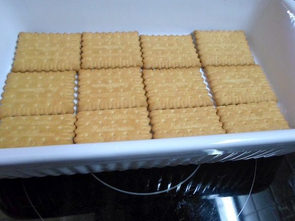 Αυτό το γλυκάκι το αγαπώ για δυό λόγους: Πρώτα-πρώτα είναι πανεύκολο και γίνεται σε 10 λεπτά….Το άλλο είναι ότι τα υλικά που περιέχει είναι αυτά που τρώγαμε όταν ήμαστε παιδιά ! Μπισκότα πτι- μπερ και κρέμες άνθος αραβοσίτου….που δεν έλειπαν απ την κουζίνα μας σχεδόν ποτέ αλλά δεν τα βαριόμασταν ποτέ…κάτι σαν το ψωμί….Το ενδιαφέρον είναι ότι κυκλοφορούν τόσες πολλές γεύσεις στο εμπόριο ώστε μπορούμε να έχουμε πάρα πολλές παραλλαγές σε αυτό το δροσερό και ελαφρύ γλυκάκι ! Κακάο-σοκολάτα , βανίλια-φράουλα , κακάο-πορτοκάλι , βανίλια-λεμόνι , βανίλια-κακάο…κλπ…εγώ σήμερα το ετοίμασα με το άρωμα της μπανάνας και του κακάο..