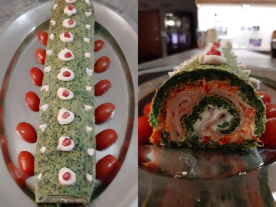 Σήμερα θα δοκιμάσουμε μπισκουί με σπανάκι, αλλαντικά, τυρί κρέμα και μερικά ακόμη απλά υλικά. Μιλάμε στην ουσία για γεμιστό ρολό από μαλακό παντεσπάνι που θα κλέψει τις εντυπώσεις στους γιορτινούς μπουφέδες και όχι μόνο.