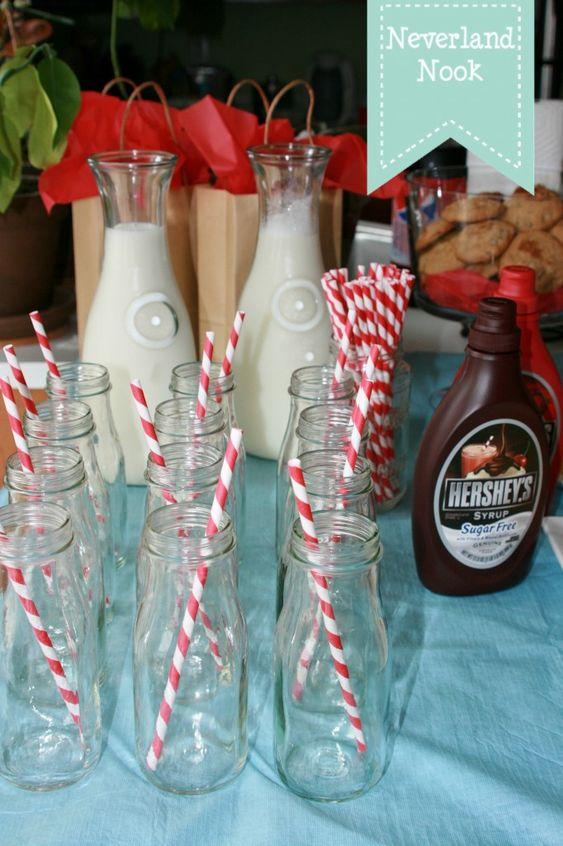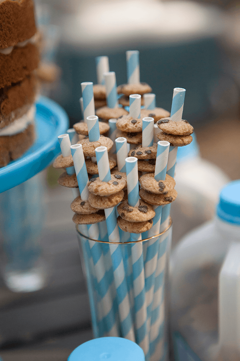 Γεμίστε μπουκαλάκια ή ποτηράκια με γάλα και βάλτε mini cookies δίπλα σε ατομικά κυπελάκια ή «περασμένα» σε χρωματιστά καλαμάκια, όπως στη φωτογραφία.