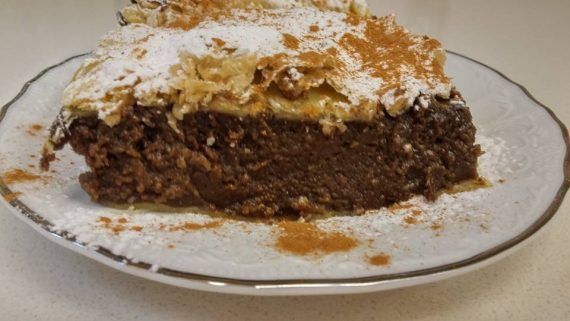 Και σοκολατένια, και νηστίσιμη και πεντανόστιμη και μπουγάτσα…. Μπουγάτσα νηστίσιμη με σοκολάτα. ΥΛΙΚΑ • 1 κούπα σιμιγδάλι ψιλό • 4 κούπες νερό • 1 και 1/2 κούπες ζάχαρη • 5 βανίλιες • Ξύσμα από 1 λεμόνι • 3 κ.σ. φυτική μαργαρίνη και λίγο επιπλέον για το άλειμμα του πυρέξ • 1/2 κούπα σταγόνες κουβερτούρας • 1 φύλλο σφολιάτας (νηστίσιμη) • Ζάχαρη άχνη και κανέλλα για το πασπάλισμα ΕΚΤΕΛΕΣΗ • Σε μια κατσαρόλα και σε μέτρια φωτιά βάζουμε το νερό, τη ζάχαρη, το ξύσμα και τις βανίλιες και ανακατεύουμε μέχρι να λιώσει η ζάχαρη και οι βανίλιες. • Προσθέτουμε το σιμιγδάλι και ανακατεύουμε με ένα σύρμα μέχρι να πετύχουμε μια ομοιογενή κρέμα. • Κατεβάζουμε από τη φωτιά και ρίχνουμε μια μια κουταλιά τη μαργαρίνη και τις σταγόνες κουβερτούρας και τα ενσωματώνουμε στην κρέμα. • Κόβουμε τη σφολιάτα σε δύο μέρη (το ένα λίγο πιο μεγάλο από το άλλο). • Ανοίγουμε τα δύο φύλλα με τον πλάστη. Με αυτόν τον τρόπο το φύλλο δε γίνεται πολύ χοντρό και γίνεται πιο αισθητή η κρέμα. Αν θέλετε το φύλλο πιο χοντρό μπορείτε να χρησιμοποιήσετε δύο φύλλα σφολιάτας • Τοποθετούμε το μεγαλύτερο φύλλο σφολιάτας σε ένα πυρέξ αφού πρώτα το έχουμε αλείψει με φυτική μαργαρίνη, προσπαθώντας να καλύψουμε και τα πλάγια του πυρέξ. • Προσθέτουμε την κρέμα και τοποθετούμε από πάνω το δεύτερο φύλλο. • Ψήνουμε στις αντιστάσεις στους 180º C για μισή ώρα περίπου μέχρι να πάρει χρώμα η σφολιάτα μας. • Πασπαλίζουμε με ζάχαρη άχνη και κανέλλα και σερβίρουμε. Καλό θα ήταν να την αφήσουμε να κρυώσει για να κόβεται πιο εύκολα.
