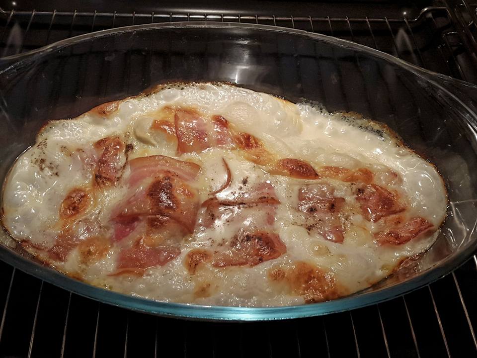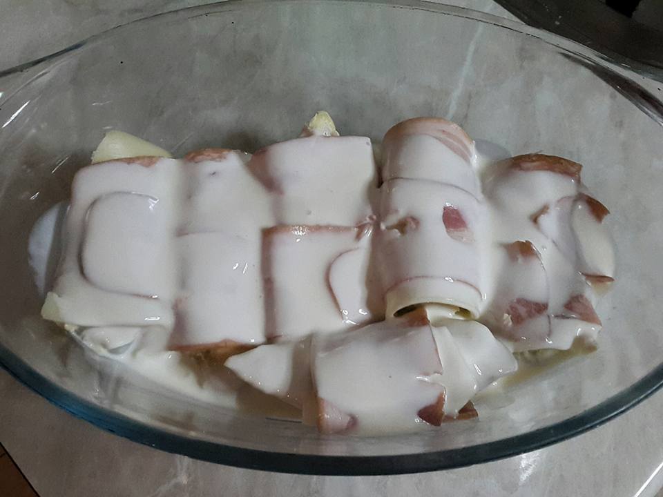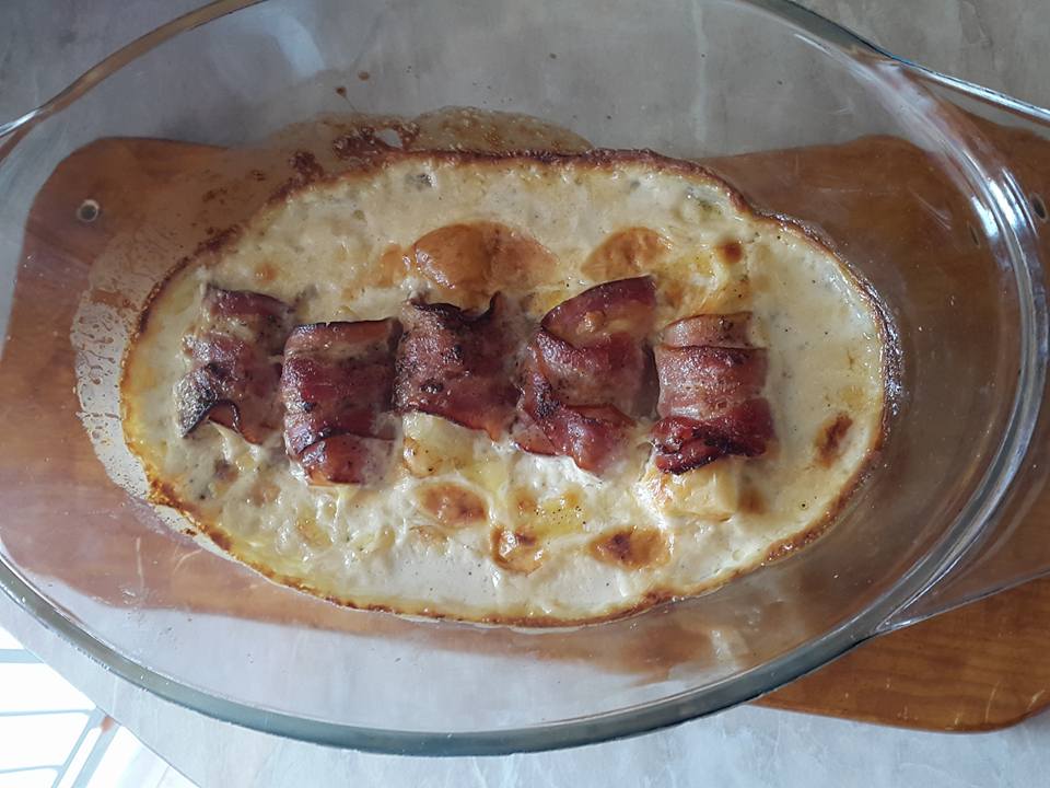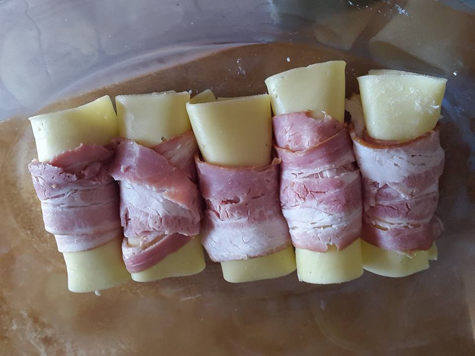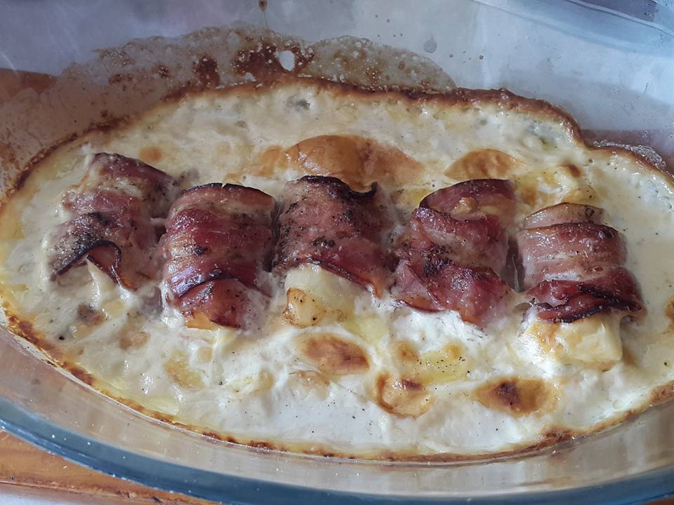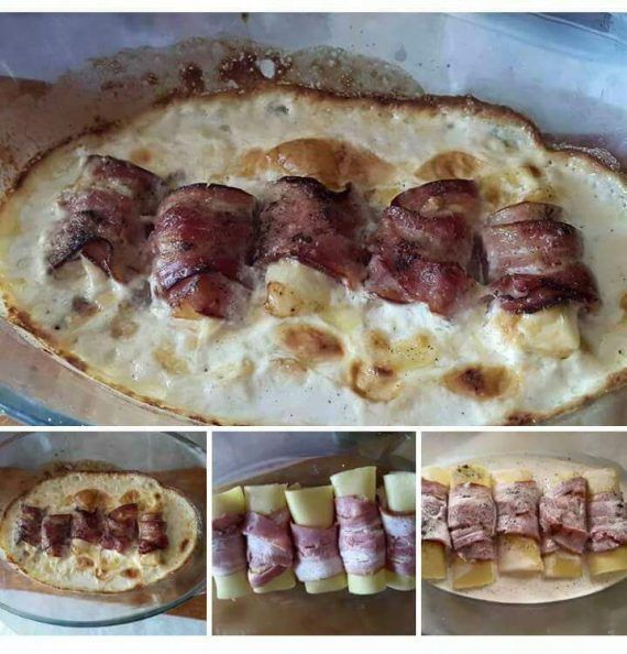 Εύκολο,γρήγορο και νόστιμο! Μπορείτε να το συνοδεύσετε με ρύζι η πατάτες τηγανητές.. Υλικά •κοτόπουλο στήθος •τυρί του τοστ •μπέικον •κρέμα γάλακτος •λίγο αλάτι & πιπέρι Εκτέλεση Βράζουμε στη κατσαρόλα το κοτόπουλο Αφού κρυώσει το κόβουμε σε μπουκίτσες και ρίχνουμε λίγο αλάτι και πιπέρι Τυλίγουμε τις μπουκίτσες κοτόπουλου με μια φέτα τυρί και μια φέτα μπέικον Έπειτα τα τοποθετούμε στο πυρέξ και περιχύνουμε με τη κρέμα γάλακτος Ψήνουμε στους 200 βαθμούς για μισή ώρα περίπου.