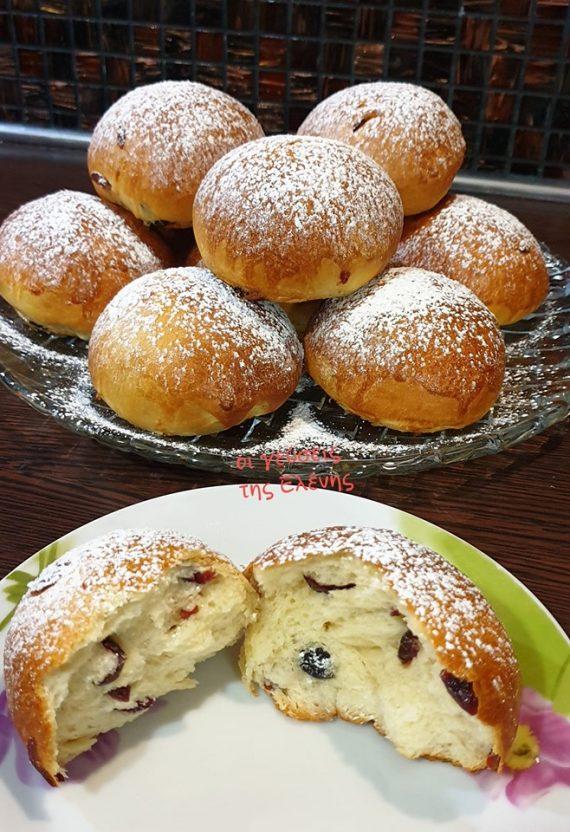 Διαλύουμε τη μαγιά στο χλιαρό νερό μαζί με 2 κουταλιές από το αλεύρι και 1 κουταλιά από την ζάχαρη… Αφήνουμε το μείγμα για 10 λεπτά… Βάζουμε στον κάδο του μίξερ και χτυπάμε το Βιτάμ με τη ζάχαρη μέχρι να ασπρίσει το μείγμα… Ρίχνουμε ένα ένα τα αυγά συνεχίζοντας το χτύπημα μέχρι να ενσωματωθούν. Σταματάμε το μίξερ και βάζουμε τον γάντζο. Αρχίζουμε να δουλεύουμε το μείγμα προσθέτοντας το αλάτι, το μείγμα της μαγιάς και συνεχίζουμε ρίχνοντας εναλλάξ το αλεύρι με το γάλα μέχρι να δημιουργηθεί μια ζύμη μαλακή και ελαστική… Προσθέτουμε τα κρανμπερις και μεταφέρουμε τη ζύμη σε ένα βαθύ μπολ και σκεπάζουμε με μια πετσέτα. Αφήνουμε τη ζύμη σε ζεστό μέρος για 1 ώρα μέχρι να φουσκώσει… Χωρίζουμε σε μπαλάκια των 100 γρ. Τα πλάθουμε να είναι ομοιόμορφα και τα βάζουμε σε ταψί στρωμένο με λαδόκολλα… Σκεπάζουμε με μια πετσέτα και τα αφήνουμε για 20 λεπτά να ξανά φουσκώσουν… Προθερμαίνουμε τον φούρνο στους 170°C. Αλείφουμε τα ψωμάκια μας με το χτυπημένο αυγό…(1 αυγό χτυπημένο, για το άλειμμα με 1 κ.σ. νερό και 1 κ.σ. ηλιέλαιο) Τα Ψήνουμε για περίπου 20 λεπτά στον αέρα μέχρι να ροδίσουν και να φουσκώσουν…. Αυτή η δόση βγάζει περίπου 15 κομμάτια.