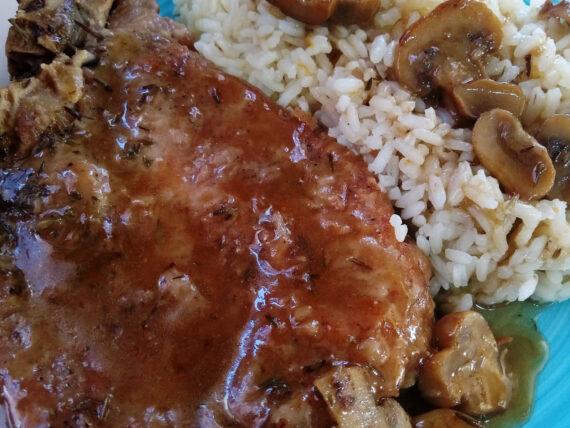 Εκτέλεση για τις μπριζόλες κρασάτες με μανιτάρια και ρύζι