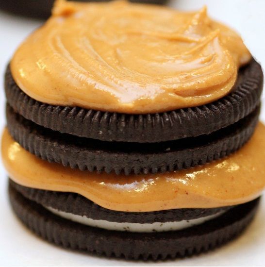 3. Τοποθετούμε από πάνω άλλο ένα μπισκότο oreo, το πιέζουμε ελαφρώς να κάτσει, και βάζουμε άλλο ένα κουταλάκι φυστικοβούτυρο από πάνω. Φτιάχνουμε ένα σάντουιτς δηλαδή.