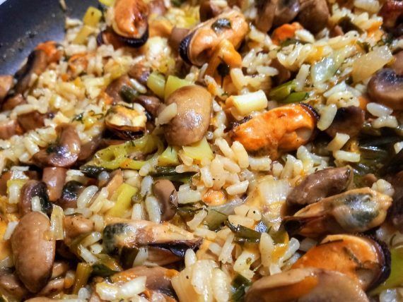 Δείτε παρακάτω την εκτέλεση για το μυδοπίλαφο με μανιτάρια: