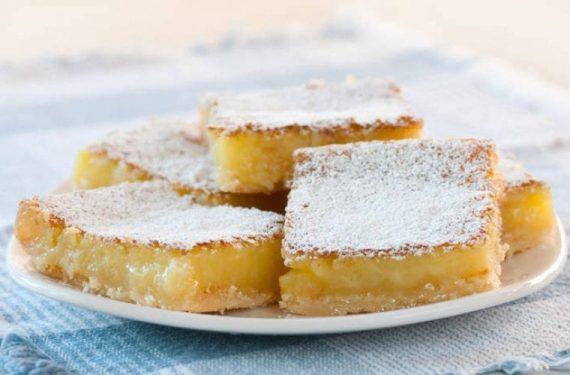 Υλικά για 4 άτομα 100 γρ. βούτυρο 1 κούπα και 3/4 της κούπας αλεύρι 500 γρ. ζάχαρη ξύσμα από 2 λεμόνια 3/4 της κούπας χυμό λεμονιού 4 αβγά ζάχαρη άχνη για το πασπάλισμα Εκτέλεση Ξεκινάτε ετοιμάζοντας τη βάση. Χτυπάτε στο μίξερ την μία κούπα από το αλεύρι με τα 100 γρ. ζάχαρη. Προσθέτετε το ξύσμα από το ένα λεμόνι και το βούτυρο και συνεχίζετε το ανακάτεμα. Βουτυρώνετε ένα ταψί διαμέτρου περίπου 24 εκατοστα και απλώνετε τη ζύμη. Ψήνετε σε προθερμασμένο φούρνο για περίπου 20 λεπτά. Στο μεταξύ ετοιμάζετε την γέμιση. Χτυπάτε τα αβγά με την υπόλοιπη ζάχαρη και συνεχίζετε με το ξύσμα από το δεύτερο λεμόνι και τον χυμό από τα λεμόνια. Τέλος ρίχνετε το υπόλοιπο αλεύρι. Βγάζετε το ταψί από τον φούρνο όπου έχει μισοψηθεί η ζύμη της βάσης και απλώνετε ομοιόμορφα τη γέμιση. Τοποθετείτε πάλι το ταψί στον φούρνο και ψήνετε για περίπου 25-30 λεπτά ακόμα ανάλογα με τον φούρνο. Βγάζετε την λεμονόπιτα από τον φούρνο και μόλις κρυώσει πασπαλίζετε με άχνη ζάχαρη.