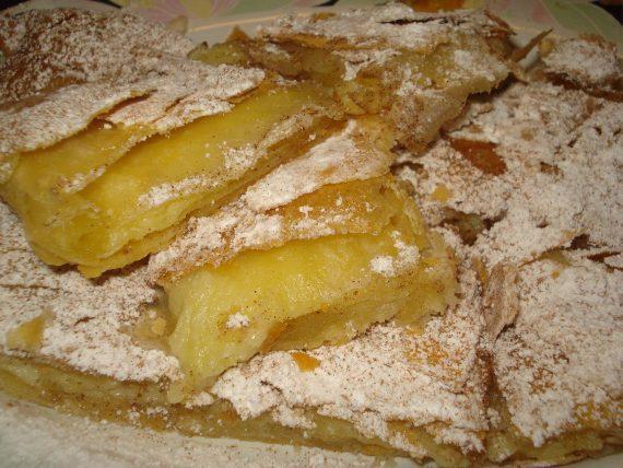 Τι χρειαζόμαστε: 4 ποτήρια του νερού νερό 1 1/2 ποτήρι νερού ζάχαρη 1 ποτήρι του νερού σιμιγδάλι ψιλό 5 βανίλιες ξύσμα από 2 λεμόνια 2 φύλλα σφολιάτας ζάχαρη άχνη και κανέλλα για το πασπάλισμα 2 κουταλιές σούπας μαργαρίνη