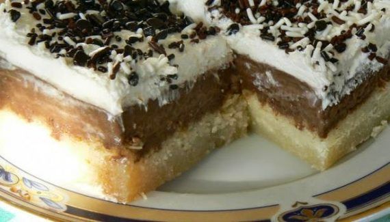Χτυπάμε στο μίξερ τη κρεμα γαλακτος με την άχνη ζάχαρη. Οταν πήξει τη βάζουμε στο ψυγείο. Κατόπιν βάζουμε το νερό, το κακάο και τη ζάχαρη σε σιγανή φωτιά μέχρι να πάρουν μια βράση. Τα κατεβάζουμε από τη φωτιά και ρίχνουμε μέσα την κουβερτούρα και ανακατεύουμε μέχρι να λυώσει. Σε βαθύ πιάτο βάζουμε λίγο από το μίγμα αυτό κάθε φορά και βουτάμε μια μια τις φρυγανιές. Τοποθετούμε τις μισές φρυγανιές στη βάση του τάπερ ή σε ταψί. Από πάνω βάζουμε μια στρώση από τη μισή κρέμα που έχουμε στο ψυγείο. Πάνω από την κρέμα στρώνουμε πάλι φρυγανιές βουτηγμένες στο κακάο και πάλι από πάνω την υπόλοιπη κρέμα. Το βάζουμε στο ψυγείο 4-5 ώρες να παγώσει. Πριν το σερβίρουμε καλύπτουμε την επιφάνεια με ζάχαρη άχνη και τρούφα.