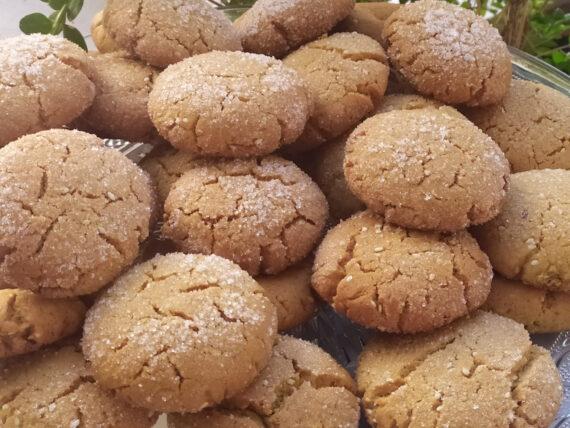 Παίρνετε περίπου 50 γραμμάρια στο χέρι σας φτιάχνεται μία μπαλίτσα και την πιέζετε προς τα κάτω ..την βουτάτε μέσα σε ζάχαρη από τις δύο πλευρές… Ψήνετε σε προθερμασμένο φούρνο στους 200 βαθμούς σε αντιστάσεις για 20 λεπτά…