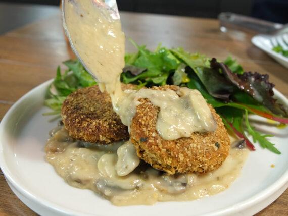 Νηστίσιμα μπιφτέκια αλά κρεμ με τραγανή κρούστα και μία λαχταριστή και δεμένη vegan αλά κρεμ, σάλτσα. Δοκιμάστε τα!