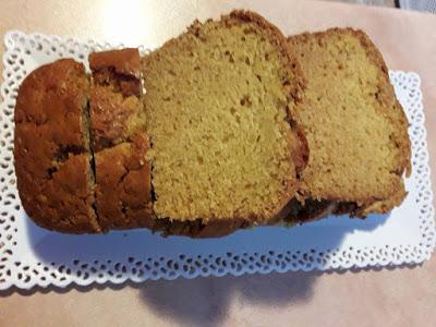 Αδειάζουμε το μείγμα σε μία μακρόστενη φόρμα του κέικ (χρησιμοποίησα μιας χρήσης αλουμινίου) και ψήνουμε σε προθερμασμένο φούρνο στους 180 βαθμούς για 40 λεπτά, (ελέγχουμε με ένα μαχαίρι αν ψήθηκε το κέικ). Καλή επιτυχία!