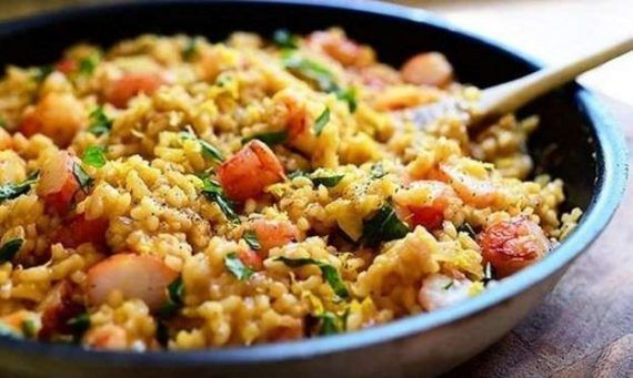 Βάζετε πάνω στο ρύζι τις γαρίδες με τη σάλτσα τους.