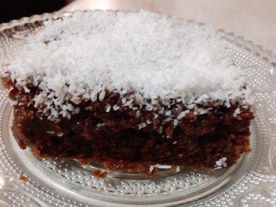 Σήμερα έχουμε ένα νηστίσιμο φανταστικό σιροπιαστό γλυκό με ινδοκάρυδο που μοσχοβολάει και γεμίζει το στόμα μας την λαχταριστή γεύση της σοκολάτας για την περίοδο της νηστείας. Για την νηστεία του Δεκαπενταύγουστου, την σαρακοστή ή και την Καθαρά Δευτέρα.