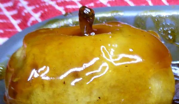 Γυρίζουμε μια φορά τα μήλα, ώστε να ψήνονται στο ζουμί γύρω γύρω. Σερβίρουμε με τη σαντιγί καραμέλα ή με ζεστά από το φούρνο καρύδια που τα ροδίσαμε για μερικά λεπτά. Απλά τέλεια!