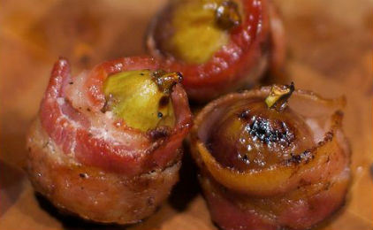 12 σύκα φρέσκα 6 κομμάτια μπέικον κομμένα στη μέση 112 γραμμάρια μοτσαρέλα σε μπαλάκια 12 οδοντογλυφίδες