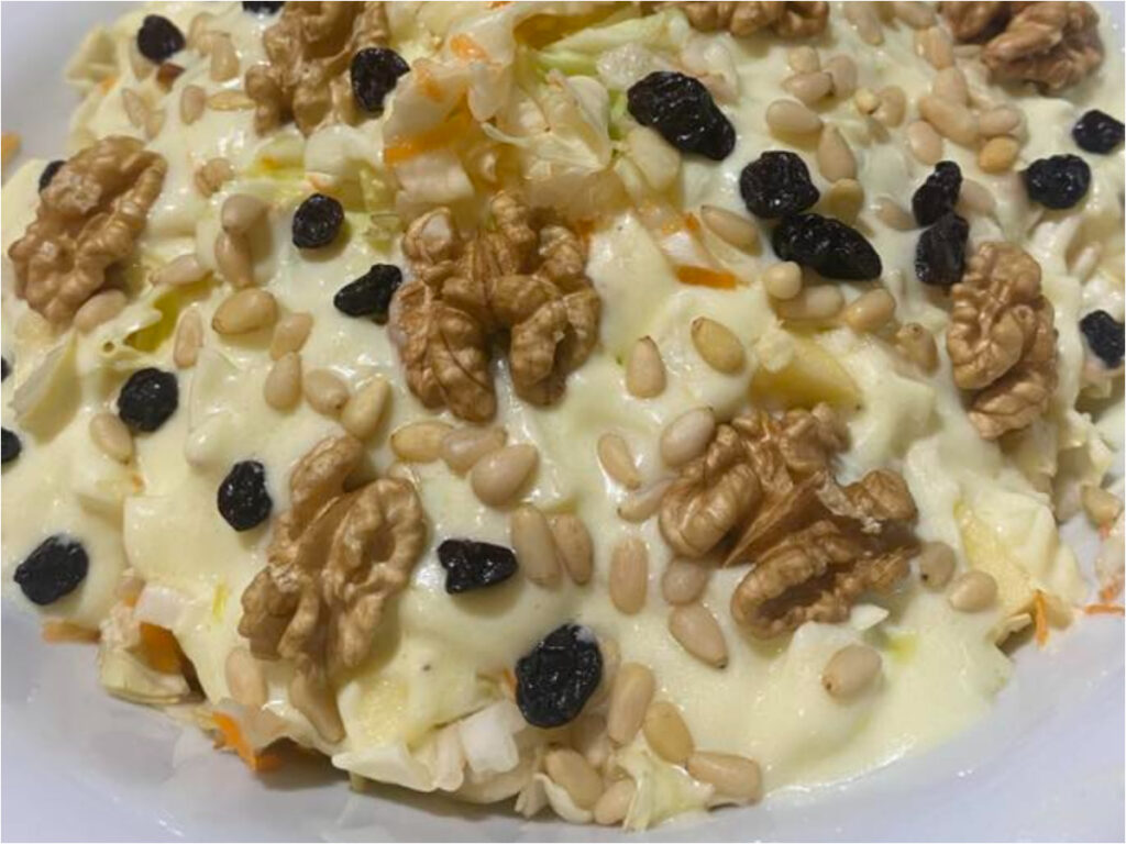 Αν ψάχνεις μία χορταστική και νόστιμη σαλάτα που να συνοδεύει το κρέας, το ψάρι, τα ζυμαρικά, ακόμη και τις σούπες τον Χειμώνα τότε αυτή τη λαχανοσαλάτα πρέπει να την δοκιμάσεις. Η σώς γιαουρτιού την κάνει πιο δροσερή και νόστιμη ενώ το ξύσμα και ο χυμός λεμονιού δίνει επιπλέον άρωμα και γεύση. Πρέπει να την δοκιμάσεις και περιμένουμε τις εντυπώσεις σου.
